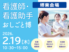 看護師・看護助手 事前予約特典有りタイトル 看護師・看護助手 おしごと博 in 堺東 開催日時 2026年02月19日(木)