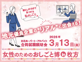 女性限定 正社員 パート・アルバイトタイトル 女性のための おしごと博 in 枚方 開催日時 2026年03月13日(金)
