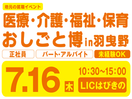 医療・介護・福祉・保育 正社員・パートタイトル 医療・介護・福祉・保育 おしごと博 in 八戸ノ里 開催日時 2026年06月10日(水)