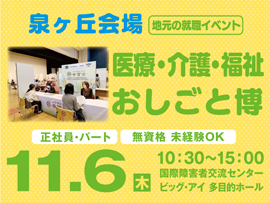 医療・介護・福祉 事前予約特典有りタイトル 医療・介護・福祉 おしごと博 in 泉ヶ丘 開催日時 2025年11月06日(木)